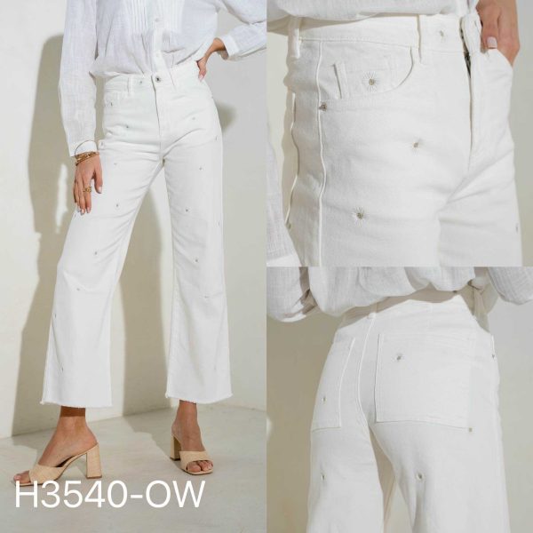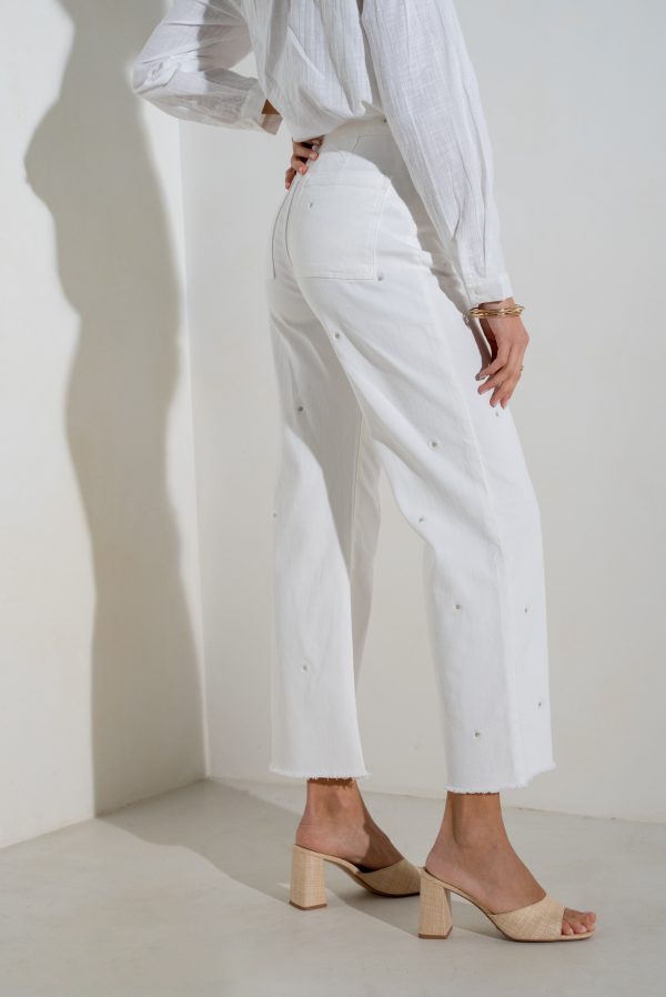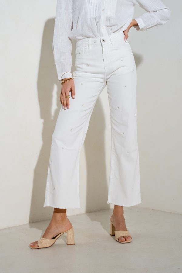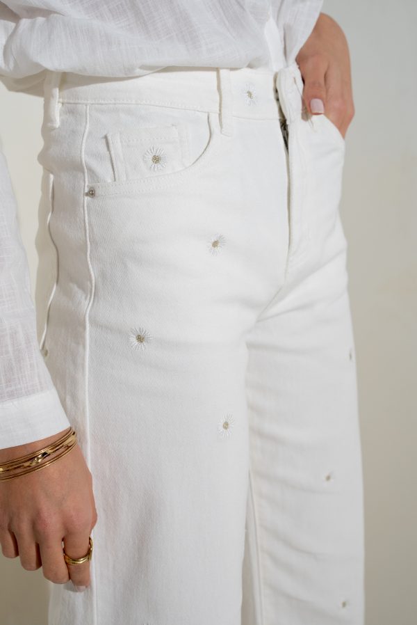 Pantalon Wide LEG & large avec broderie couleur blanc