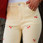 Pantalon Wide LEG & large avec broderie couleur blanc