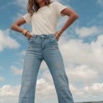 Pantalon Wide Leg&Large couleur jeans avec broderie