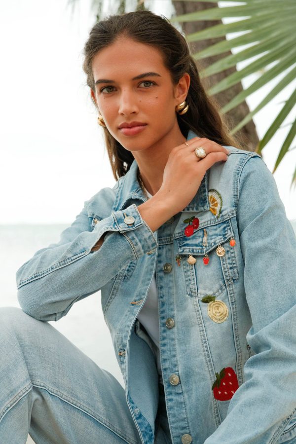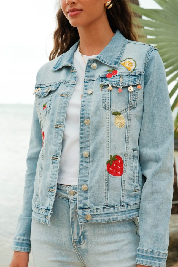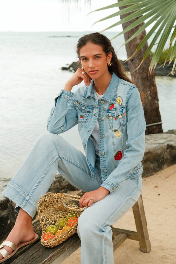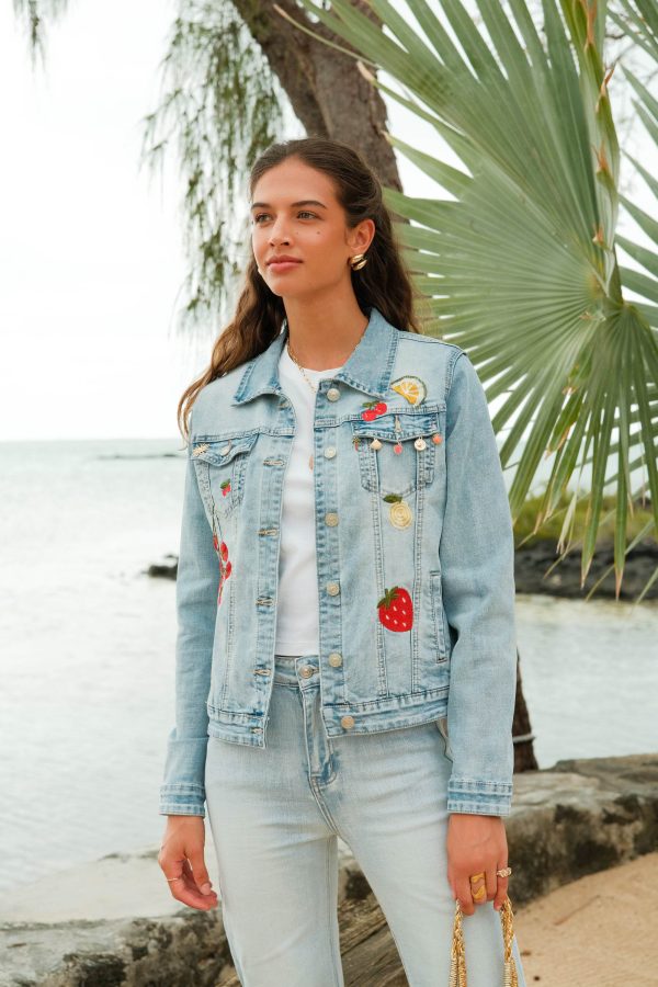 Veste jeans avec brioderie -63% Cotton -35.5 Polyester -1.5 Elasthanne